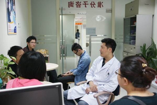 揭黎明為患者講解近視手術(shù)知識