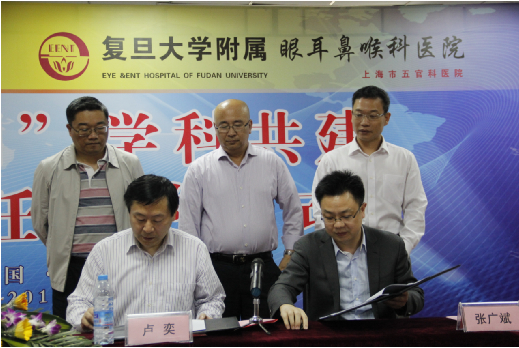 上海復(fù)旦大學(xué)附屬眼耳鼻喉科醫(yī)院眼科主任盧奕教授在簽約儀式上講話