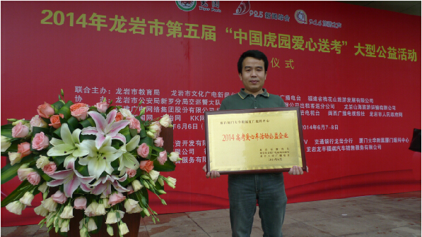 獲頒“2014高考愛心車活動公益企業(yè)”榮譽(yù)牌匾