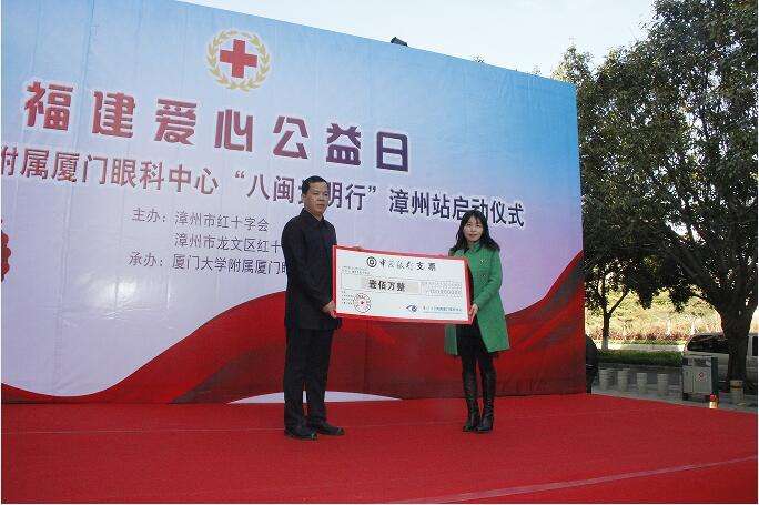 啟動儀式上廈門大學附屬廈門眼科中心向漳州市紅十字會捐贈100萬元,并成立“漳州市紅十字光明專項基金”,基金主要用于漳州貧困眼疾患者的救助工作。此外,當天活動現(xiàn)場,來自廈門眼科中心的數(shù)名眼科專家還為從漳州各地前來參加活動的百名民眾進行了“眼病義診篩查”。
