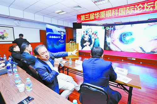 良好技術,貼心服務。廈門眼科中心白內障及眼底名家在華廈國際論壇上進行手術直播。