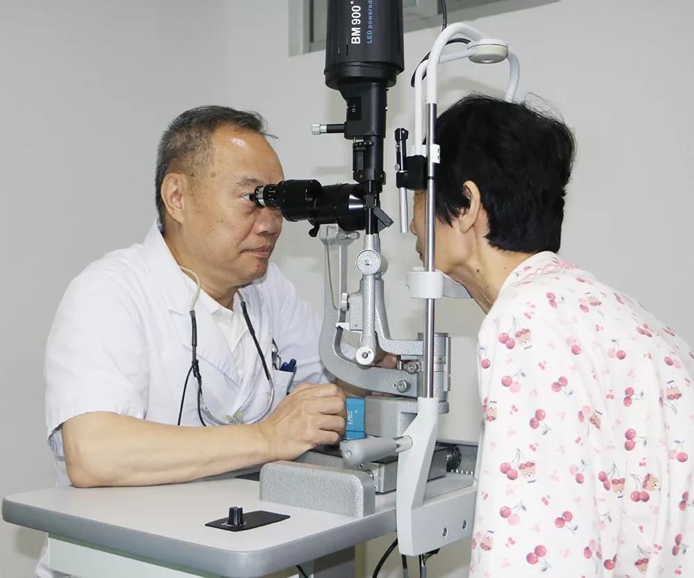 國際眼科科學院院士、博士研究生導師,廈門眼科中心總院長黎曉新為患者做檢查。