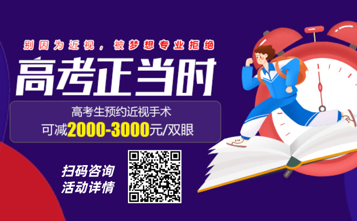 高考生憑相關(guān)證件可享受以下優(yōu)惠:全飛秒SMILE/臻飛秒/星飛秒/全激光SMART優(yōu)惠3000元/雙眼;半飛秒優(yōu)惠2000元/雙眼。