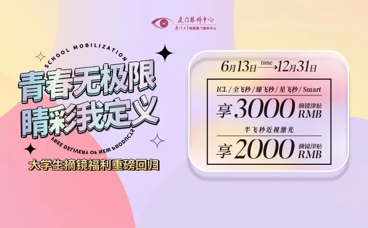 為了幫助更多近視朋友擺脫眼鏡, 廈門眼科中心近期開展了諸多近視手術(shù)活動(dòng),快來看看有沒有適合你的那一種 。