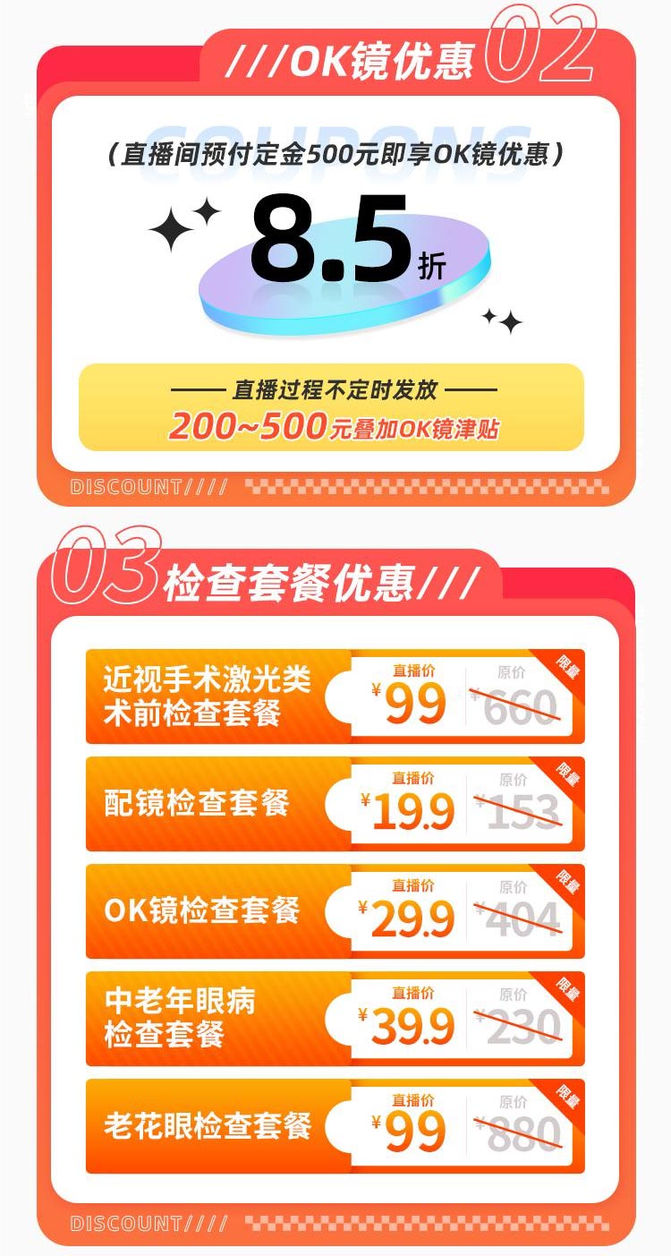 直播間預(yù)付定金500元,即享OK鏡85折驗(yàn)配優(yōu)惠;