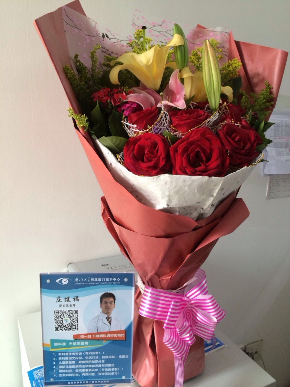 “謝謝莊醫(yī)生,真的感謝你那天中午剛做完手術(shù)沒(méi)顧上吃飯還給我孩子做檢查看眼睛,辛苦你了。“這天,一位患兒的家長(zhǎng)將一束鮮花送到我院斜視與小兒眼科莊建福副主任醫(yī)師手中,并連聲道謝。