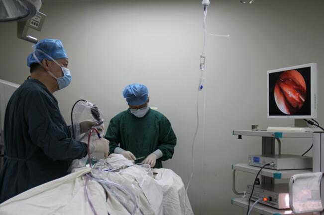 周太平主任在實施淚囊鼻腔吻合術(經(jīng)鼻內鏡)