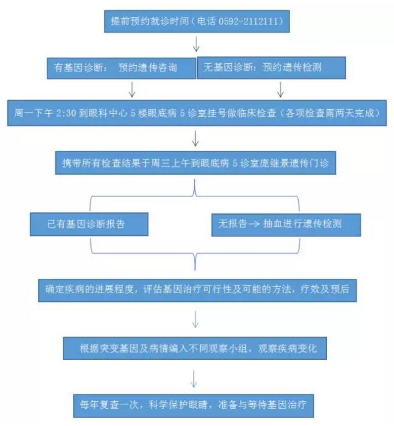 為了既滿足患者需求又提升門診效率,龐教授優(yōu)化就診流程,“凡預(yù)約周三上午眼遺傳病門診的患者,需提前在周一下午2:30到院,進行需要兩天才能完成的包括眼底照相,OCT,ERG,VEP,光敏感度/視野等各項檢查。周三上午拿著檢查結(jié)果及基因檢測報告進行龐教授的門診咨詢。”這樣更有利于在現(xiàn)場當(dāng)面對患者的病情做出評估,以滿足患者希望盡快了解自己病情及治療可能性的需求,也可以免去門診中途再去做各項檢查的時間。