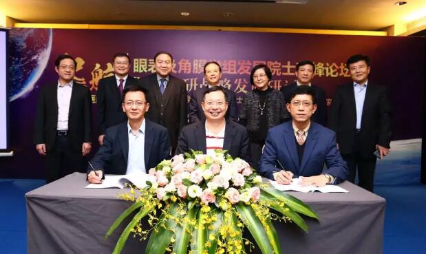 華廈眼科董事長蘇慶燦(中),艾德生物醫(yī)藥董事長鄭立謀(左),繼景生物創(chuàng)始人兼CEO龐繼景(右)簽署協(xié)議