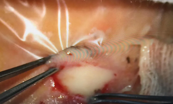 萌萌眼眶中的異物位置十分兇險,手術(shù)稍有不慎萌萌的眼睛將有斷肌風(fēng)險,甚而影響視神經(jīng),累及視力,手術(shù)難度十分大,既要保證異物全部取出,又要保證不損傷萌萌的視神經(jīng),這對擁有豐富眼外傷手術(shù)經(jīng)驗的李海波博士而言,同樣是一份考驗。手術(shù)的每一個環(huán)節(jié)都不能有一絲一毫的懈怠,整臺手術(shù)操作可謂”步步驚心”。