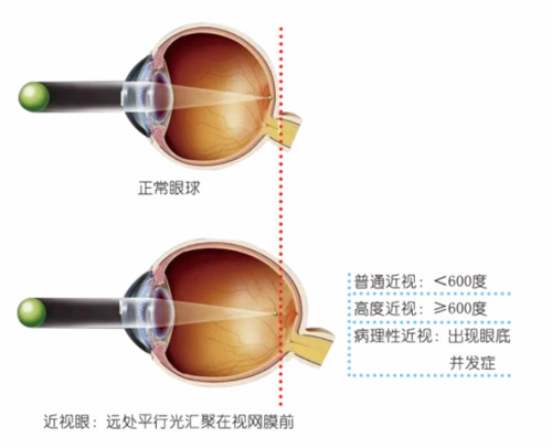 高度近視是指近視度數(shù)大于600度,伴有眼軸延長、眼底視網(wǎng)膜和脈絡(luò)膜萎縮性等退行性病變?yōu)橹饕攸c的屈光不正。高度近視常常伴有并發(fā)癥發(fā)生,如干眼癥、黃斑出血、視網(wǎng)膜脫離等,嚴重者還有可能致盲。