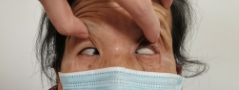 坐在謝仁藝博士面前的劉阿婆,左眼眼皮耷拉下垂,無法自主睜眼。用手把眼皮撐開,只見雙眼的黑眼珠都嚴(yán)重向內(nèi)向下偏移,左眼眶里的黑眼珠更是只余一小塊黑點(diǎn),幾乎已快要“消失不見”。
