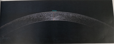 商旭敏副主任告訴我們,小蕓的右眼已經(jīng)是圓錐角膜后期,角膜厚度僅有343,再繼續(xù)發(fā)展下去,就會(huì)水腫破裂。由于圓錐角膜都是雙眼發(fā)病,小蕓的左眼此時(shí)也開(kāi)始出現(xiàn)圓錐角膜的癥狀了。