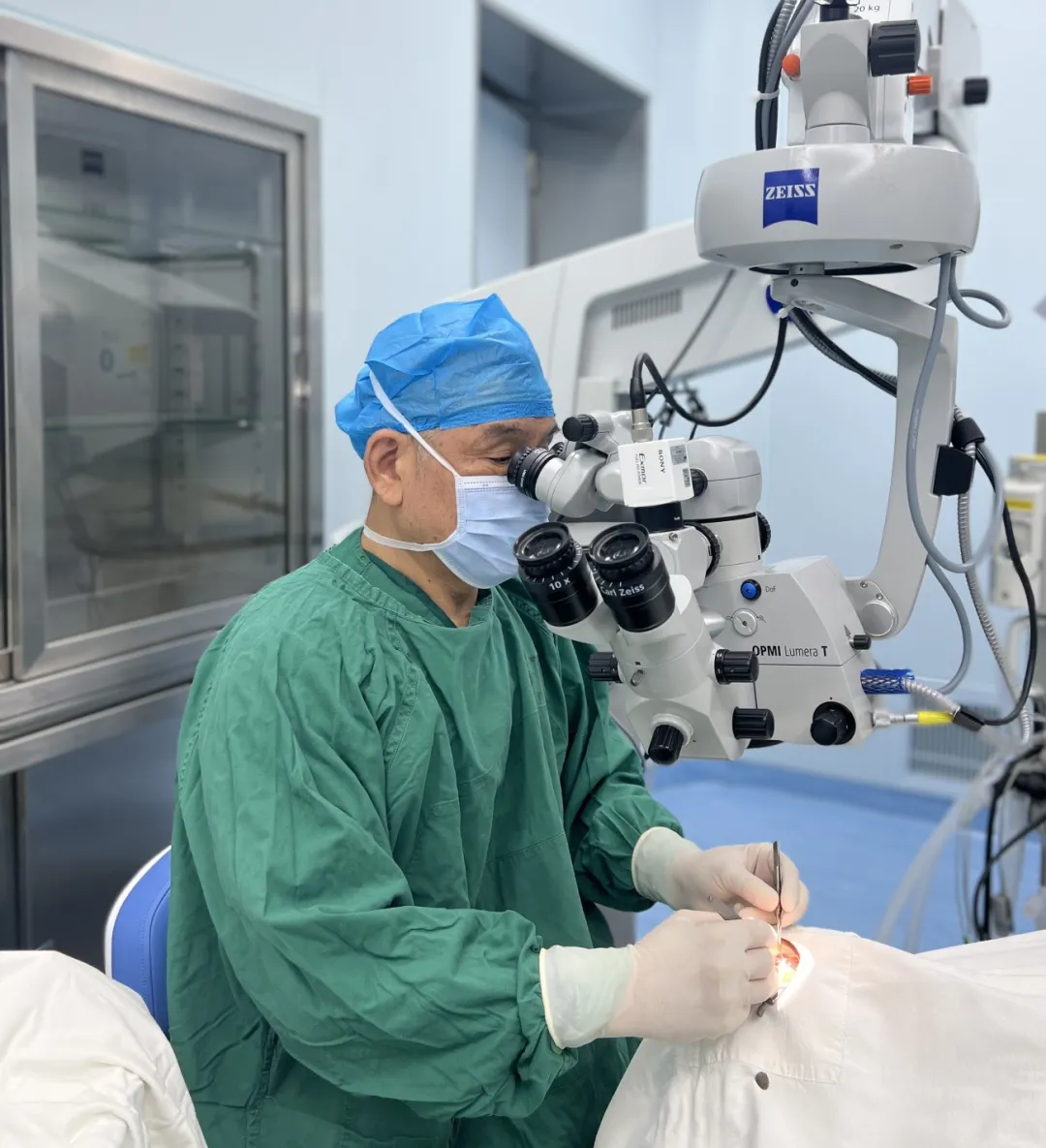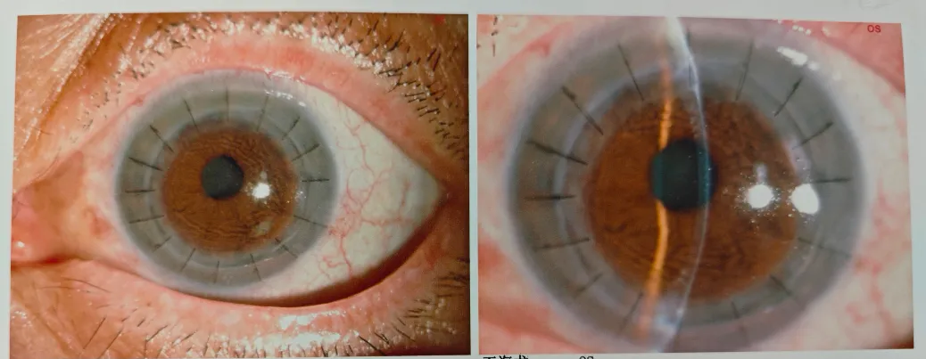 當(dāng)天下午,吳護(hù)平院長接診了陳伯伯。經(jīng)過檢查確認(rèn),陳伯伯結(jié)膜有輕微充血,角膜上皮有缺損,角膜上有不規(guī)則灰白色混濁,深度達(dá)到基質(zhì)層,視力基本只剩光感,屬于角膜內(nèi)皮營養(yǎng)不良。完善所有的術(shù)前檢查,當(dāng)天傍晚,陳伯伯就進(jìn)了手術(shù)室,由吳護(hù)平院長親自操刀手術(shù)順利完成角膜移植手術(shù)。