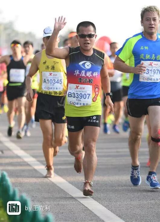 如今,李清模已對馬拉松欲罷不能,已經(jīng)完成了67場中國田徑協(xié)會認(rèn)可的官方馬拉松賽。由于每次都是光腳參賽,被稱為“赤腳大仙”的他在跑友圈里也是小有名氣。