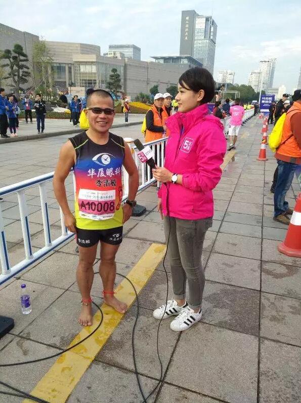 眼科醫(yī)院集團(tuán)形象代言人、廈門赫赫有名的“赤腳大仙”李清模(阿摸Amo)赴香港參加12日舉行的2017渣打香港馬拉松賽,這是他人生中第68場馬拉松,這距1月15日他參加臺灣金門馬拉松賽剛過了27天。