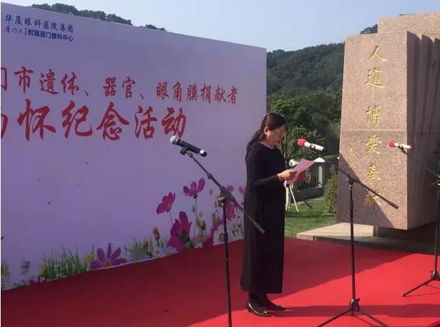 廈門大學(xué)附屬?gòu)B門眼科中心是福建省眼角膜捐獻(xiàn)指定的接收機(jī)構(gòu)。廈門大學(xué)附屬?gòu)B門眼科中心黨委書記陳逸恬在緬懷儀式上致辭,表達(dá)對(duì)生命的理性思考,對(duì)捐獻(xiàn)者偉大人格的崇敬之情。同時(shí)希望“人道、博愛、奉獻(xiàn)”的紅十字精神越來越被廣大愛心市民所接受和推崇,也希望更多的角膜盲患者能重獲光明,開啟新的生活。