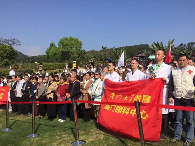 4月1日上午,廈門市紅十字會(huì)聯(lián)合廈門大學(xué)附屬?gòu)B門眼科中心在海滄文圃山陵園組織的2017年廈門市遺體與器官(組織)捐獻(xiàn)者緬懷紀(jì)念活動(dòng)順利舉行。捐獻(xiàn)者家屬、捐獻(xiàn)志愿者代表,廈門市紅十字會(huì)黨組書記、常務(wù)副會(huì)長(zhǎng)蘇蘇,廈門市紅十字會(huì)副會(huì)長(zhǎng)兼秘書長(zhǎng)俞娟,廈門市衛(wèi)計(jì)委醫(yī)政醫(yī)管處處長(zhǎng)陳糧,廈門大學(xué)附屬?gòu)B門眼科中心黨委書記陳逸恬,以及廈門海滄文圃山陵園開發(fā)有限公司、廈門大學(xué)醫(yī)學(xué)院、廈門醫(yī)學(xué)院、廈門大學(xué)附屬?gòu)B門眼科中心以及各區(qū)紅十字會(huì)代表共300余人參加了活動(dòng)。