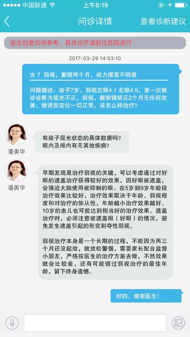 沒有認(rèn)識的名醫(yī)?不知道找誰來就診?沒在怕!眼科通為您智能推薦名醫(yī),幫助患者找到較合適自己的名醫(yī),就診形成的電子病歷及檢查報告?zhèn)魅肫脚_便于醫(yī)生查詢,同時也會推送給患者,在APP上建立患者自己的健康檔案。醫(yī)生通過后臺管理,可以隨時查看患者的檔案,并設(shè)置個性化的標(biāo)簽備注,眼科醫(yī)生還可以針對患者的復(fù)診、復(fù)查行為進(jìn)行提醒及跟蹤。