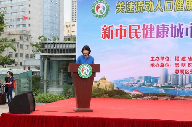 思明區(qū)衛(wèi)生和計(jì)劃生育局劉蓓局長宣讀《流動(dòng)人口健康促進(jìn)倡議書》