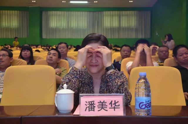 潘美華教授與現(xiàn)場學生共同做眼保健操