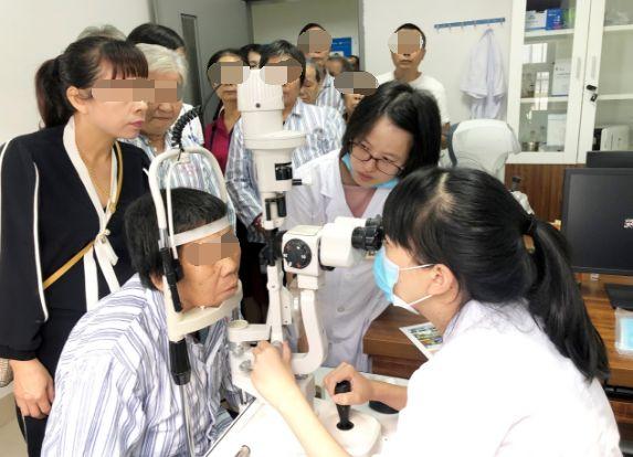 圖為等待做白內(nèi)障手術(shù)的患者及家屬