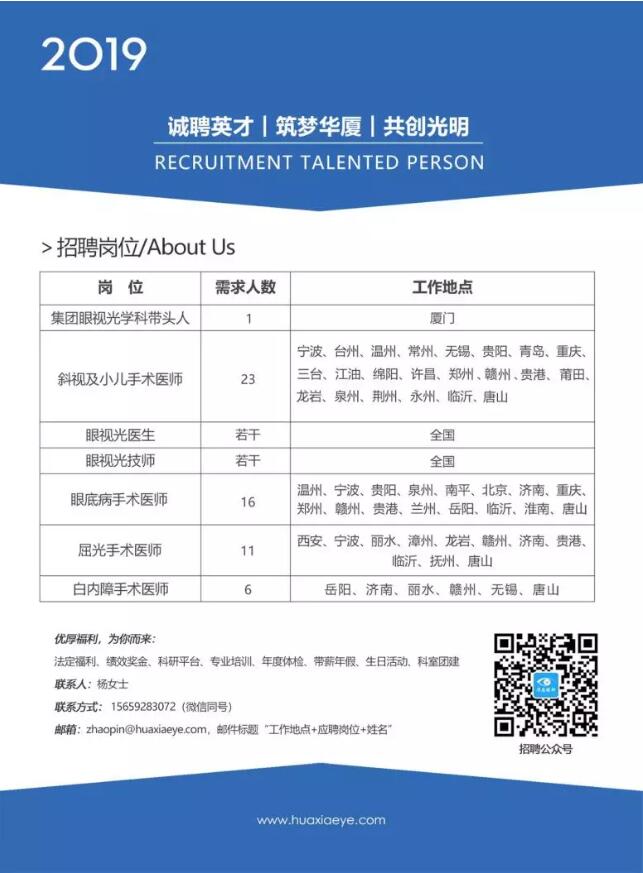 高速發(fā)展中的華廈眼科,邀請(qǐng)您一道筑夢華廈,共創(chuàng)光明!