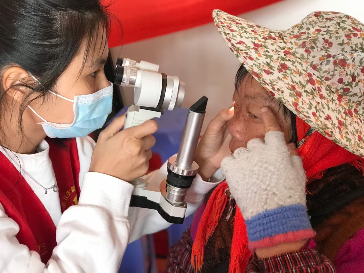 高山上的村莊,這里常見眼病主要為翼狀胬肉和白內(nèi)障。由于海拔較高,紫外線強度較大。強烈的紫外線照射,容易導(dǎo)致角膜緣干細(xì)胞的損害,引起細(xì)胞增殖,可能導(dǎo)致翼狀胬肉。另外,紫外線會加速晶狀體的老化,使晶狀體逐漸變混濁,易增加白內(nèi)障的患病幾率,導(dǎo)致白內(nèi)障的提前發(fā)生。專家們提醒村民要盡量避免紫外線照射、煙塵、風(fēng)沙的刺激,戶外活動可以佩戴太陽鏡等護(hù)眼工具。