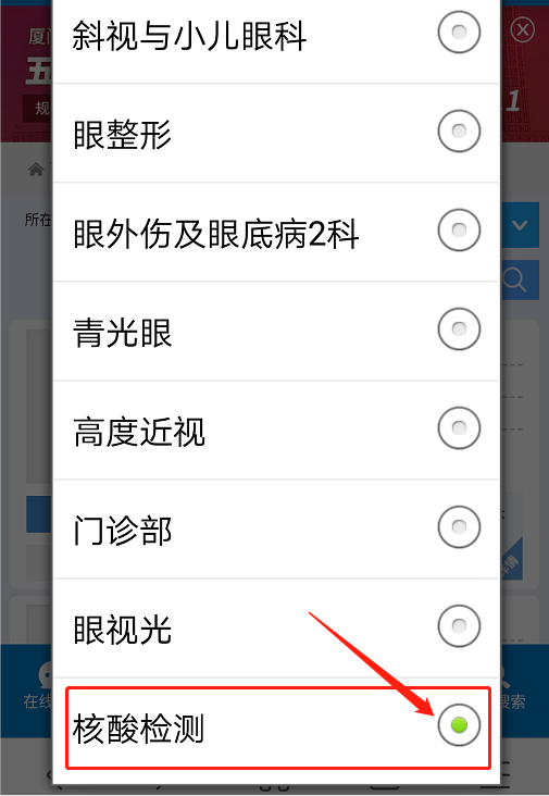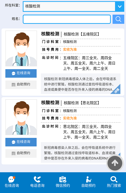 “核酸檢測(cè)”-“選擇院區(qū)”