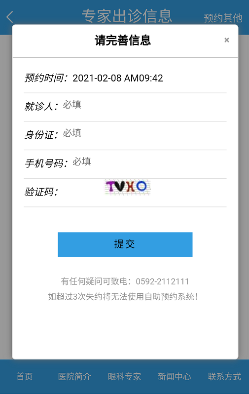 “選擇院區(qū)”-“選擇時(shí)間”-“填寫(xiě)信息”