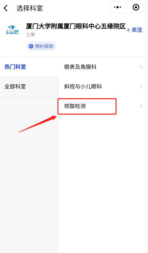 “選擇科室”-“核酸檢測(cè)”