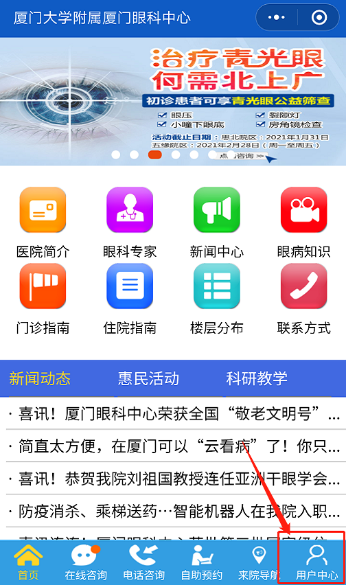市民可登陸廈門(mén)眼科中心官方網(wǎng)站,或在微信公眾號(hào)點(diǎn)擊“微官網(wǎng)”進(jìn)行自助預(yù)約。