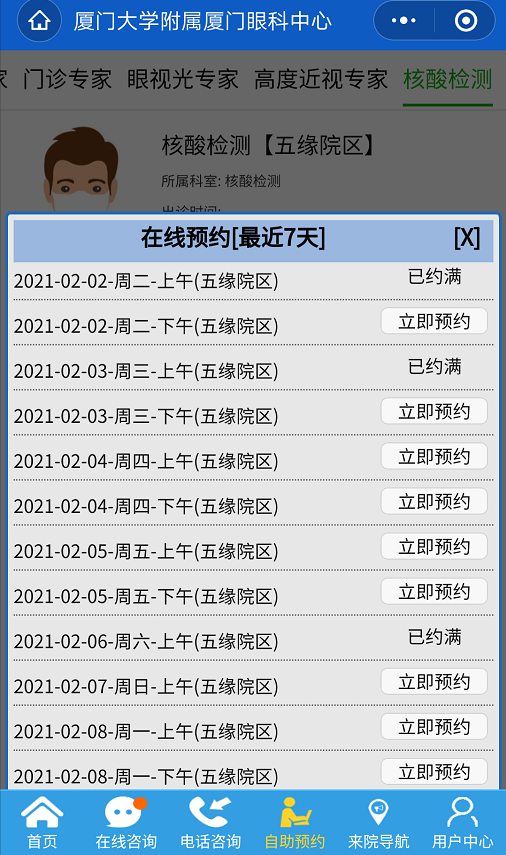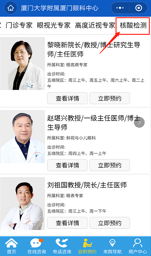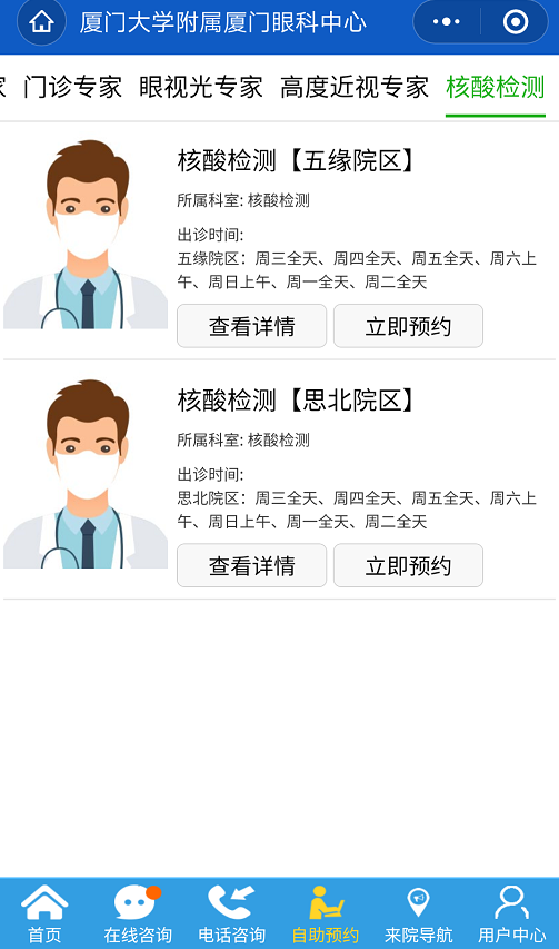 為了更好地滿足廣大市民需求,廈門(mén)眼科中心提供核酸檢測(cè)服務(wù),同時(shí)可以在線上自助預(yù)約核酸檢測(cè)啦!