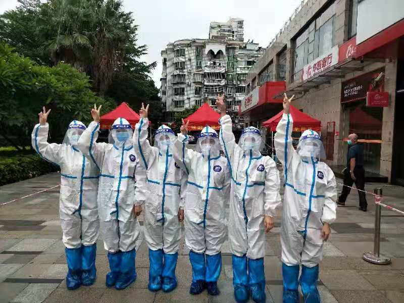 多名醫(yī)護(hù)人員緊急趕赴一線,參與核酸檢測工作