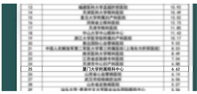 近日,《全國GCP機構藥物臨床試驗量值排行榜》發(fā)布,在反映藥物臨床試驗水平的《專科榜》中我院居第25位,全國眼科??瓢裰芯拥?位,展現(xiàn)了廈門眼科中心在科研及藥物臨床試驗方面的實力。