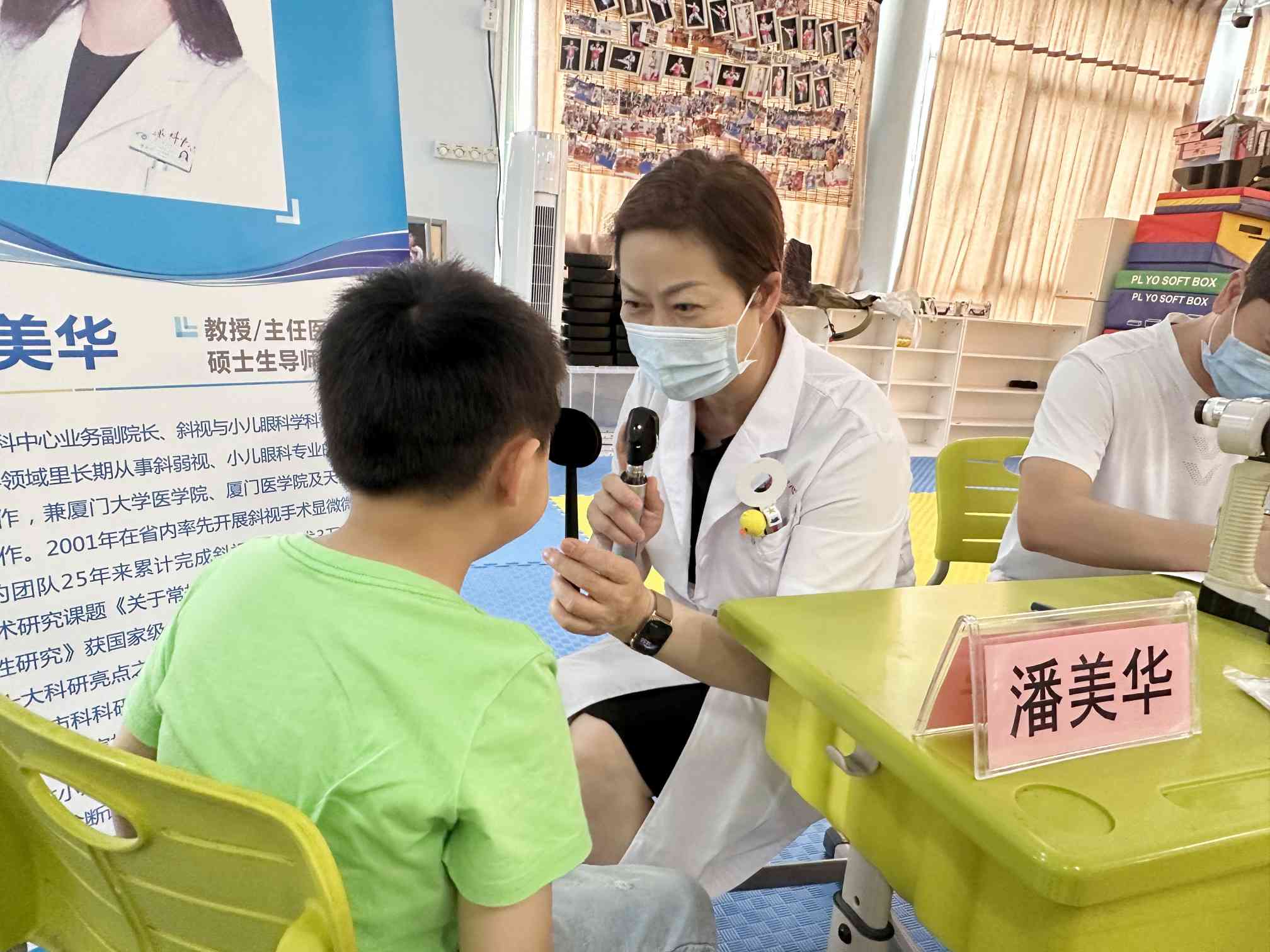 近日,為守護(hù)特需兒童的光明未來(lái),在廈門市「愛(ài)心廈門」建設(shè)工作領(lǐng)導(dǎo)小組辦公室及海滄區(qū)殘疾人聯(lián)合會(huì)的指導(dǎo)下,廈門眼科中心「看見(jiàn)幸?!寡劢】倒骓?xiàng)目志愿者服務(wù)隊(duì)在業(yè)務(wù)副院長(zhǎng)、斜視與小兒眼病中心學(xué)科帶頭人潘美華教授的帶領(lǐng)下,來(lái)到了海滄區(qū)小海星特殊兒童服務(wù)中心,為特需兒童們開展了一場(chǎng)特殊的眼健康公益篩查診療活動(dòng)。