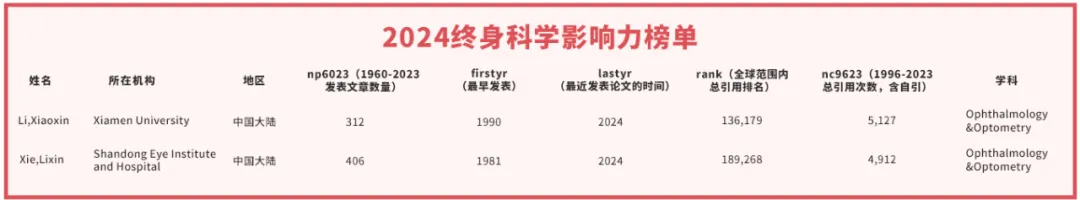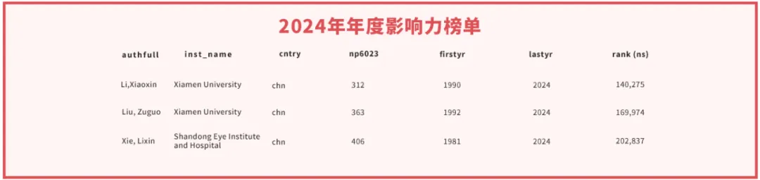 廈門眼科中心2025年度【文章導(dǎo)讀】近日,美國斯坦福大學(xué)發(fā)布了第七版《全球前2%頂尖科學(xué)家榜單2024》。國際眼科科學(xué)院院士、廈門眼科中心總院長黎曉新教授、廈門眼科中心院士工作站導(dǎo)師中國工程院院士謝立信教授