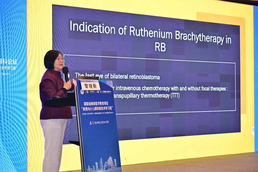 ▲ 國(guó)際眼科科學(xué)院院士、廈門眼科中心總院長(zhǎng)黎曉新教授分享《雙側(cè)RB的第二只眼治療》