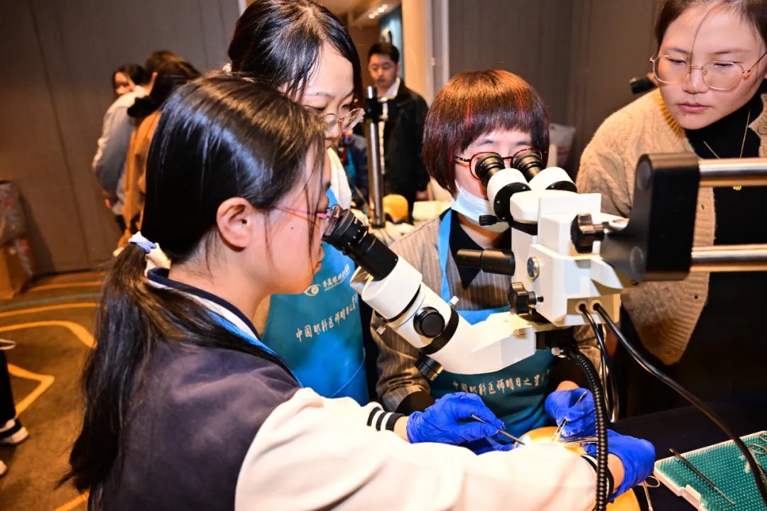 除學(xué)術(shù)環(huán)節(jié)外,本次論壇特別開(kāi)設(shè)了斜視手術(shù)Wetlab實(shí)操培訓(xùn)專場(chǎng)及手術(shù)錄像展播。廈門眼科中心斜視與小兒眼科的主任醫(yī)師謝仁藝,副主任醫(yī)師楊梅、何歡、王海燕為學(xué)員們一對(duì)一講解了斜視手術(shù)的操作要點(diǎn)、技巧,手把手指導(dǎo)學(xué)員在動(dòng)物眼上實(shí)操,大大提升了學(xué)員們的斜視手術(shù)技能。