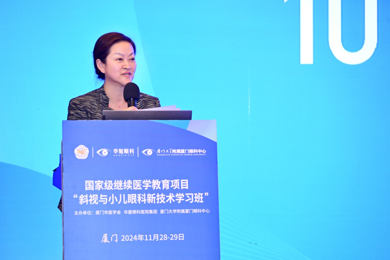 廈門眼科中心業(yè)務(wù)副院長、斜視與小兒眼科學(xué)科帶頭人潘美華教授主持開幕式
