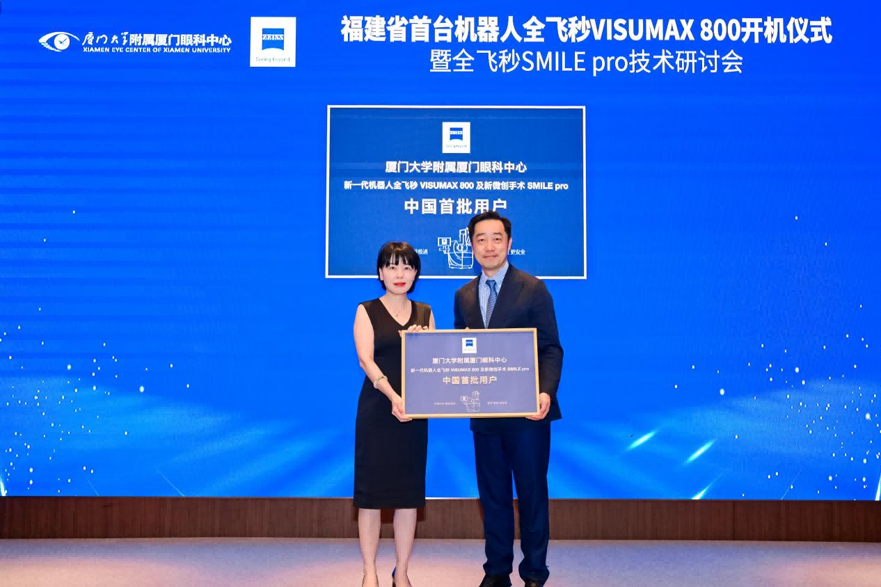 儀式上,華廈眼科醫(yī)院集團張志勇副總裁表示,作為全國首批、福建首家應用機器人全飛秒VISUMAX 800及全飛秒SMILE pro的眼科機構,廈門眼科中心的專家團隊憑借卓越表現(xiàn)獲得“全國首批蔡司VISUMAX 800認證醫(yī)師”,率先進入屈光手術“智能機器人輔助”時代。相信在高水平團隊及先進技術的雙重保障下,醫(yī)院定能為近視患者帶來更智能、快速、舒適的手術體驗及更高質(zhì)量的視覺矯正服務。