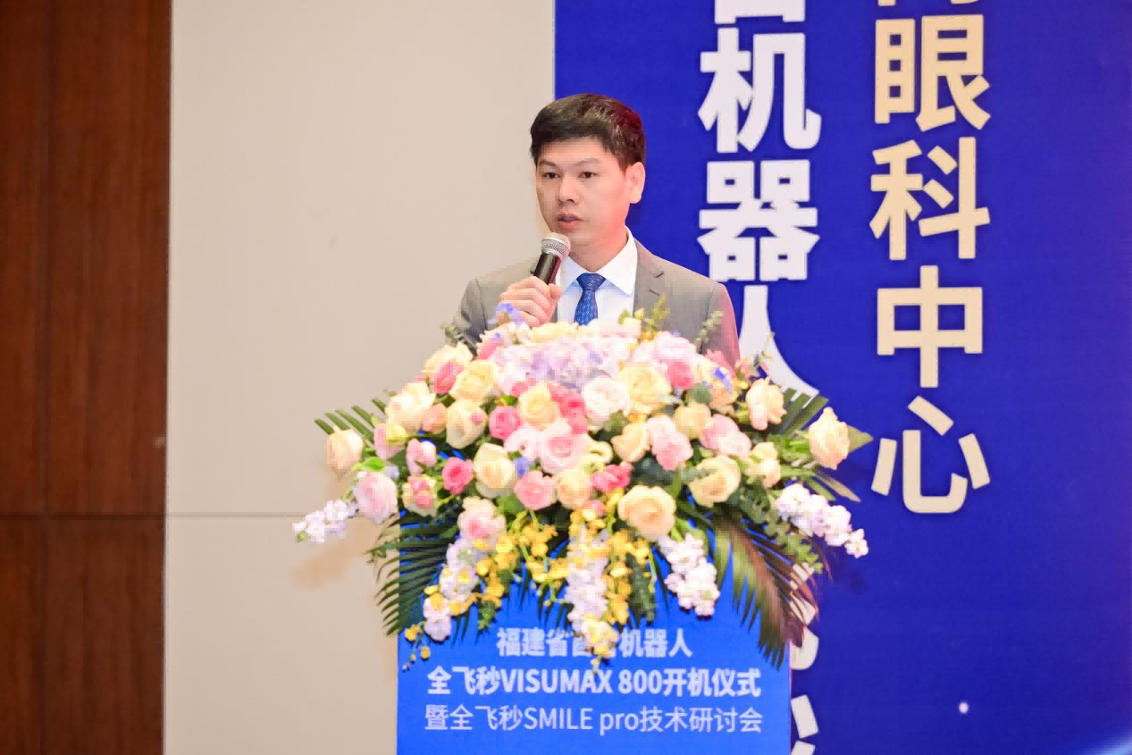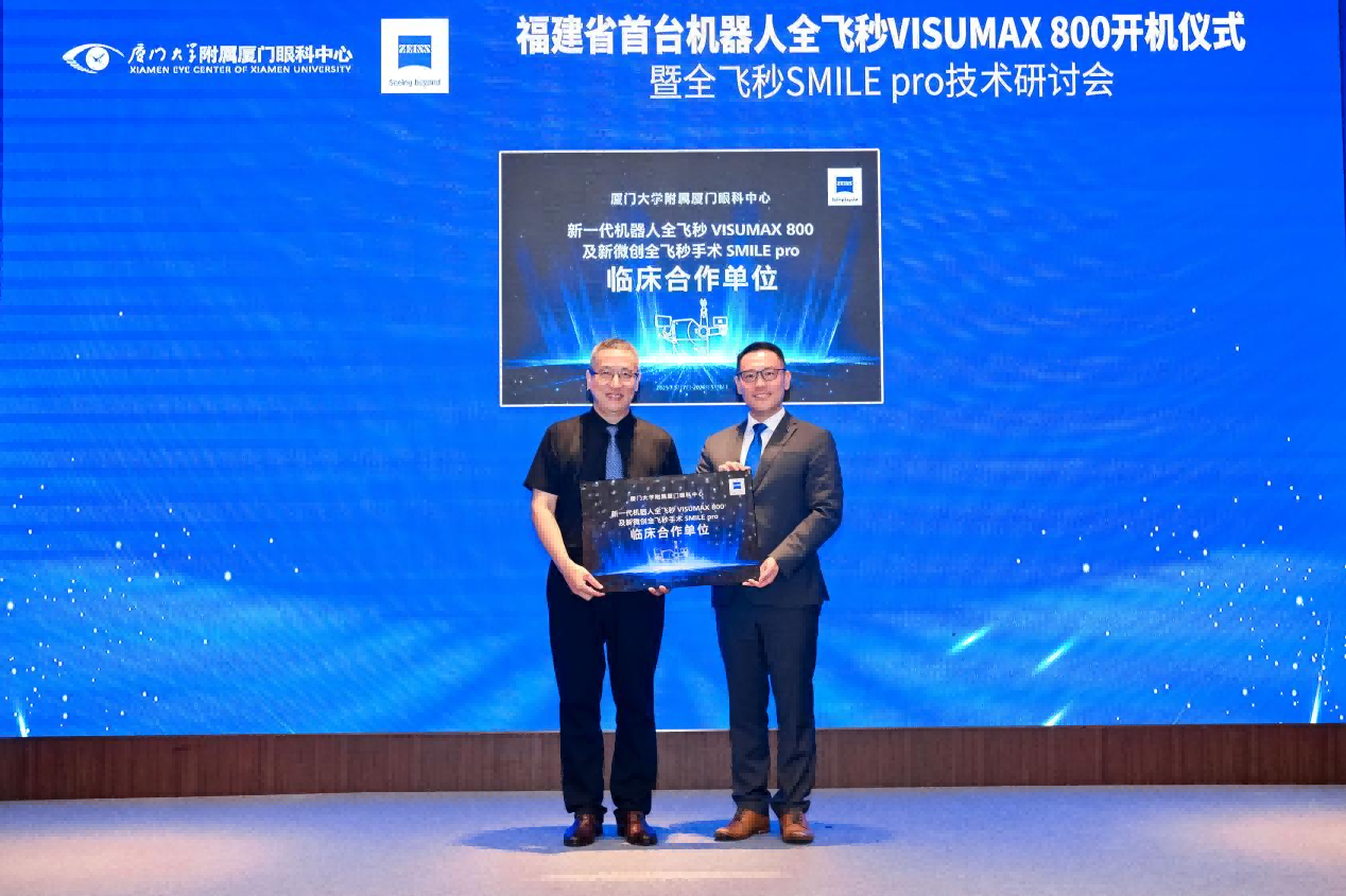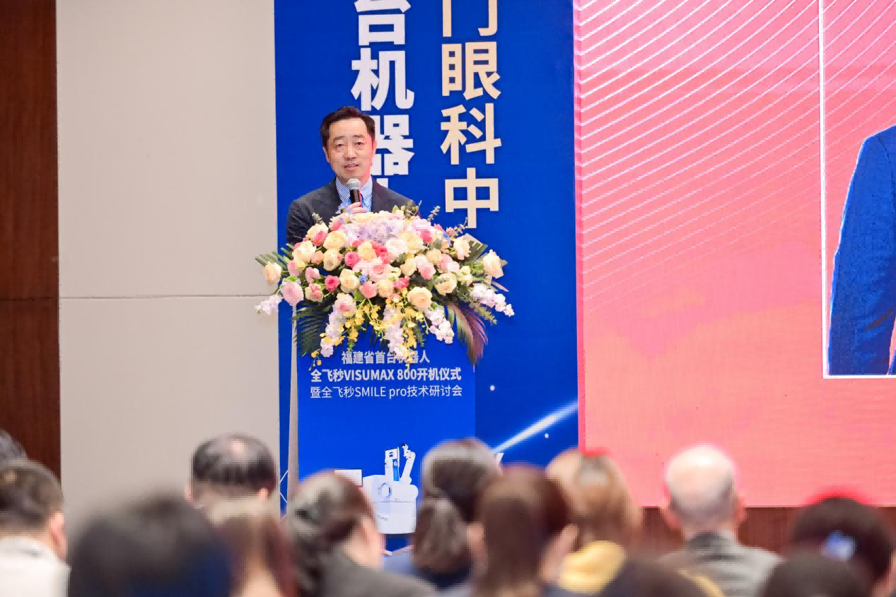 蔡司公司王建中總監(jiān)對廈門眼科中心成為新一代機器人全飛秒VISUMAX 800設備的首批裝機機構表示祝賀。他表示新一代機器人全飛秒VISUMAX 800和新微創(chuàng)SMILE pro手術必將為中國屈光事業(yè)的進一步發(fā)展注入新動能。