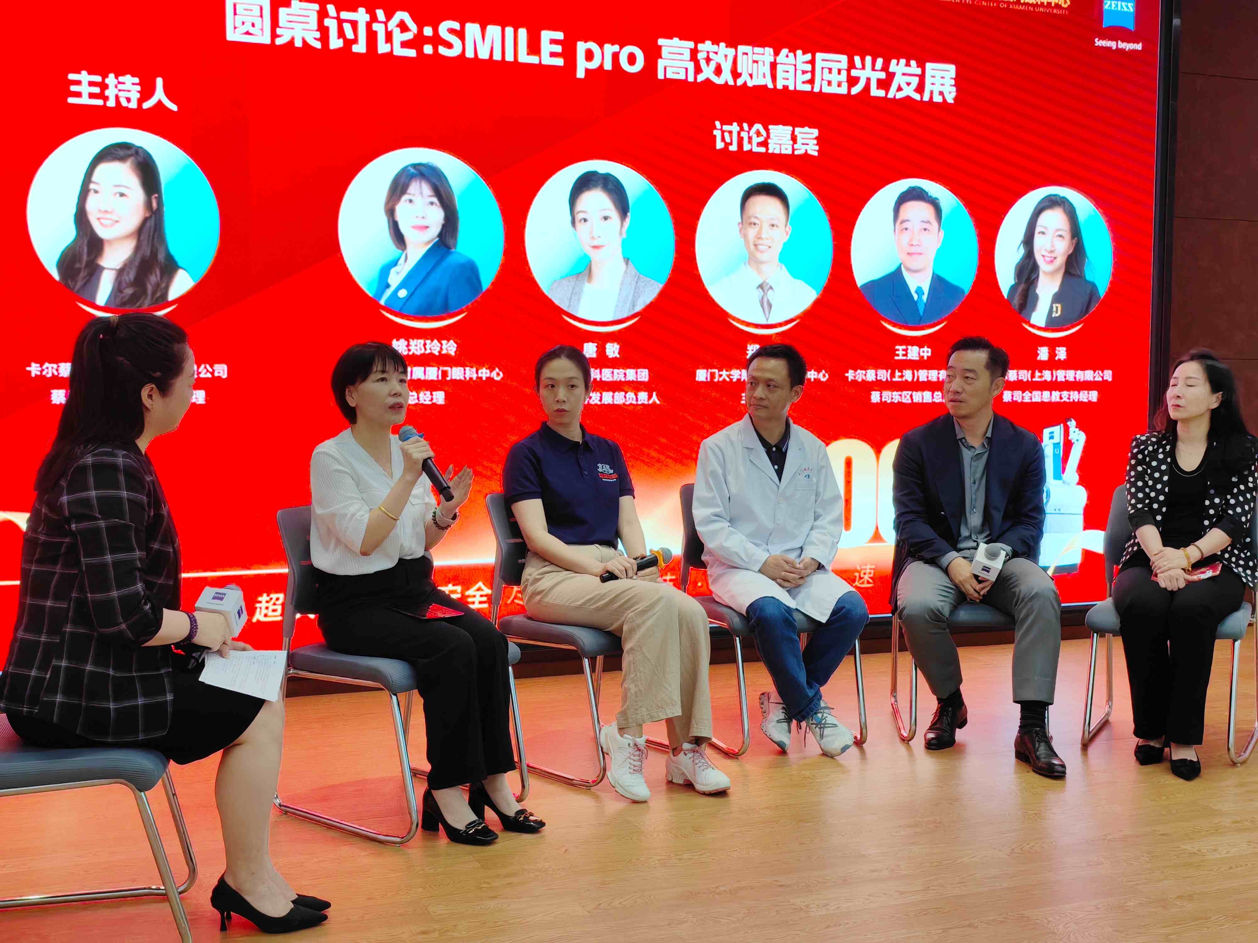 廈門眼科中心總經理姚鄭玲玲、華廈眼科醫(yī)院集團屈光學科發(fā)展部負責人唐敏、廈門眼科中心屈光科主任醫(yī)師鄭林、蔡司眼科大東區(qū)銷售總監(jiān)王建中、蔡司醫(yī)療屈光全國患教經理潘澤等嘉賓,圍繞SMILE Pro技術在屈光領域的應用現(xiàn)狀、未來發(fā)展、提升手術質量與患者體驗等議題展開深度探討: