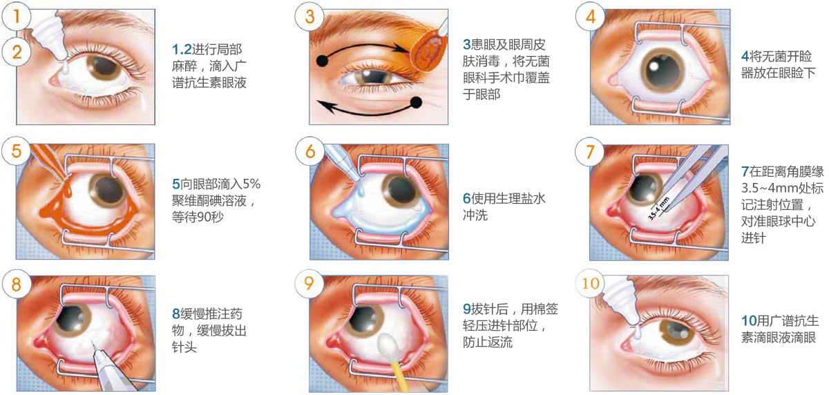 眼內(nèi)注藥是從白眼球進(jìn)針,將藥物注射至眼球內(nèi)。表面麻醉即可,注射過程數(shù)秒鐘,痛感不明顯,不必?fù)?dān)心。