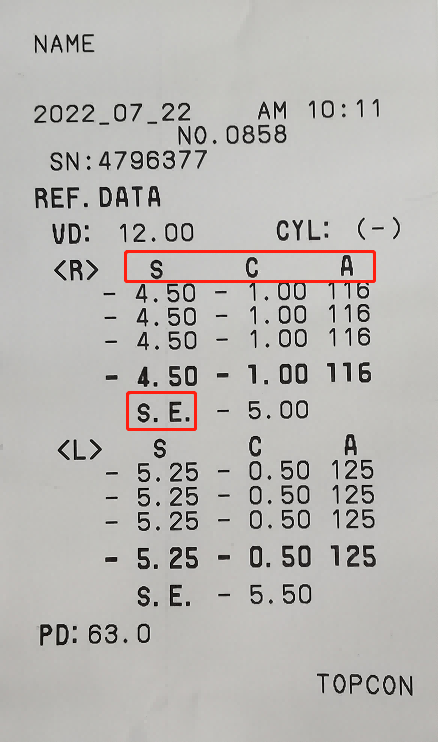 S.E.是指等效球鏡(S.E.=近視度數(shù)+1/2散光度數(shù)),為了保證檢查結(jié)果的準確性,每只眼睛的檢測一般會連測3次,zui后的結(jié)果是取3次檢測結(jié)果的平均值,就是建議矯正的屈光度數(shù),僅具有參考價值。