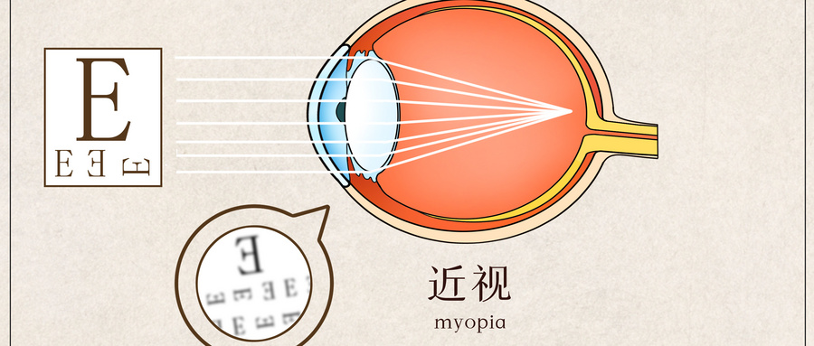 當角膜和晶狀體曲率過大或者眼球太長,光線聚焦在視網(wǎng)膜前,此時稱為近視。這時候看近沒問題,看遠不清楚。