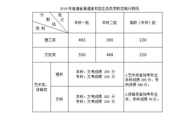 福建2019年高考分數(shù)線已公布!