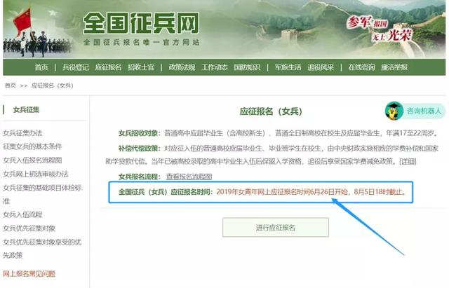 昨天,全國征兵網(wǎng)女兵征集報名通道打開,2019年女兵征集報名工作正式啟動!據(jù)悉,男兵征集工作已于1月份開啟,自此福建省應(yīng)征男女青年即日起皆可登錄全國征兵網(wǎng)統(tǒng)一進(jìn)行在線報名!