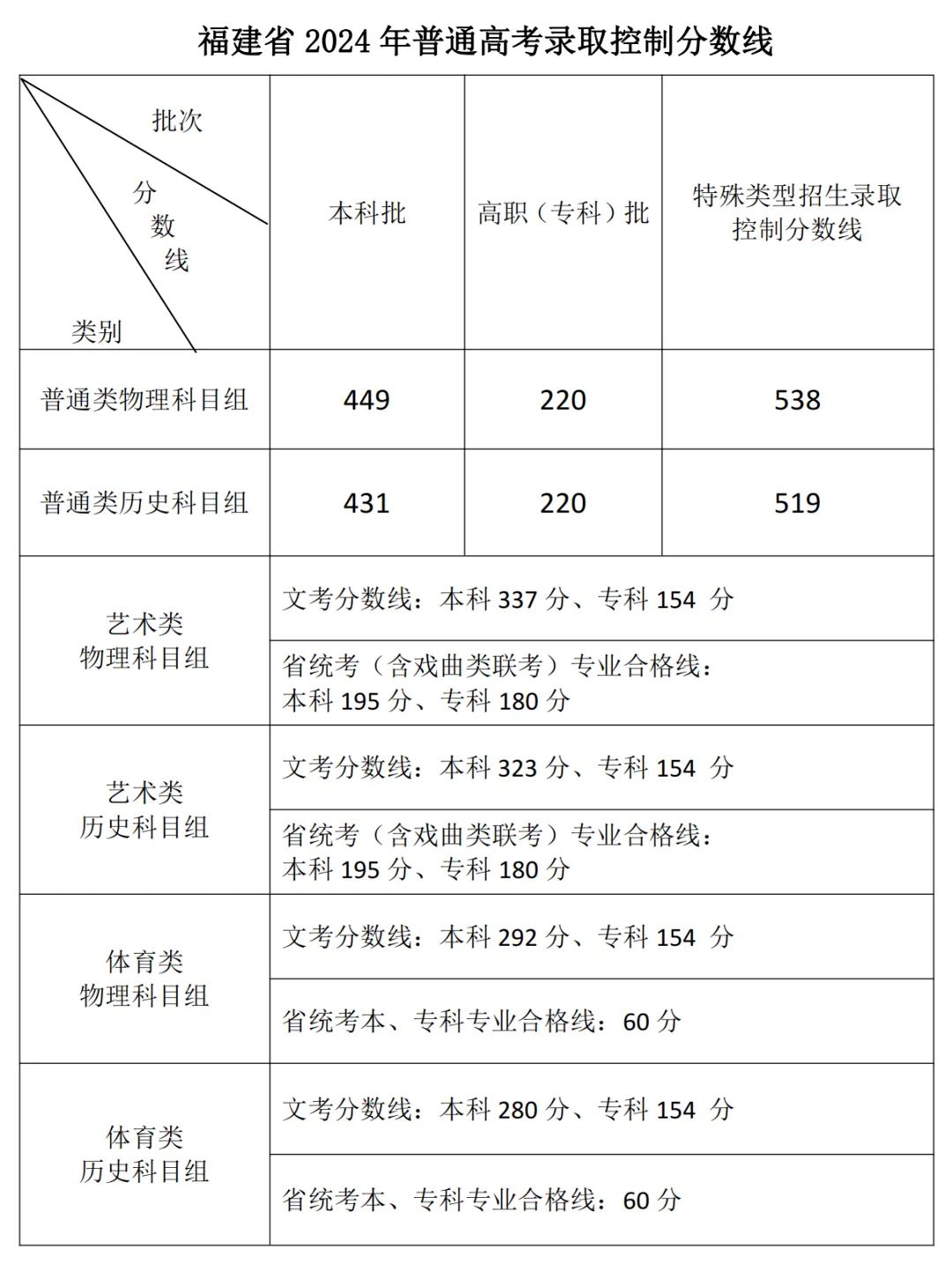 各類錄取控制分數(shù)線公布