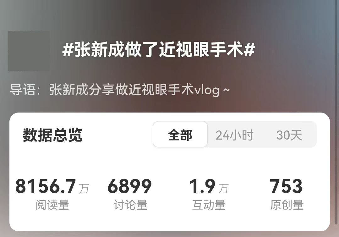 近日,知名演員張新成在其個人社交平臺上大方分享了自己做ICL晶體植入手術的全過程,登上了熱搜。